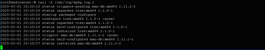 Например, применим указанную утилиту для контроля логов низкоуровневого пакетного менеджера ОСDebian: