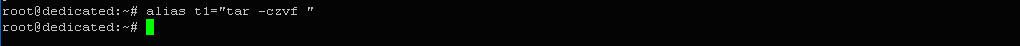 Теперь создадим алиас t1 утилиты tar с указанными в команде параметрами: